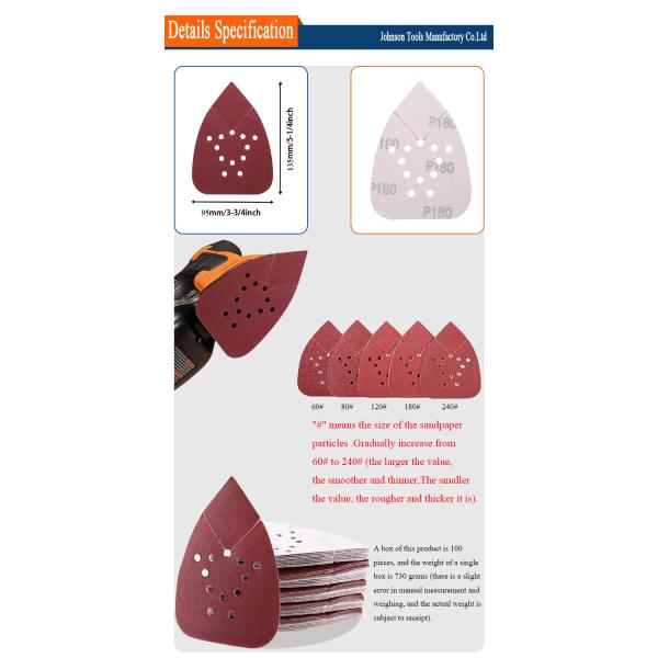 Triangle Mouse Detail Sanding Paper hook and loop backed Self Stick Red Aluminum Oxide For Marble Car Paint Wood